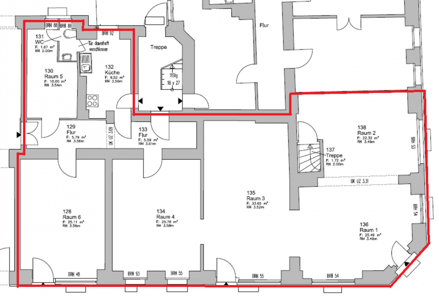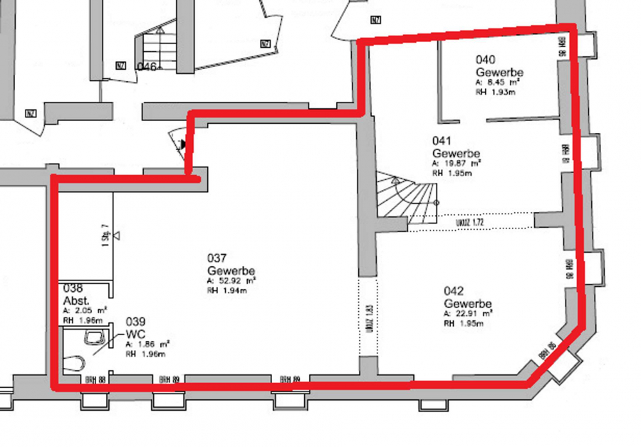 Die Gewerbeeinheit ist derzeit noch vermietet, weshalb wir Ihnen leider keine Innenraum Fotos anbieten können. Sie finden jedoch den Grundriss der Gewerbeeinheit vom Erdgeschoss und vom Keller.