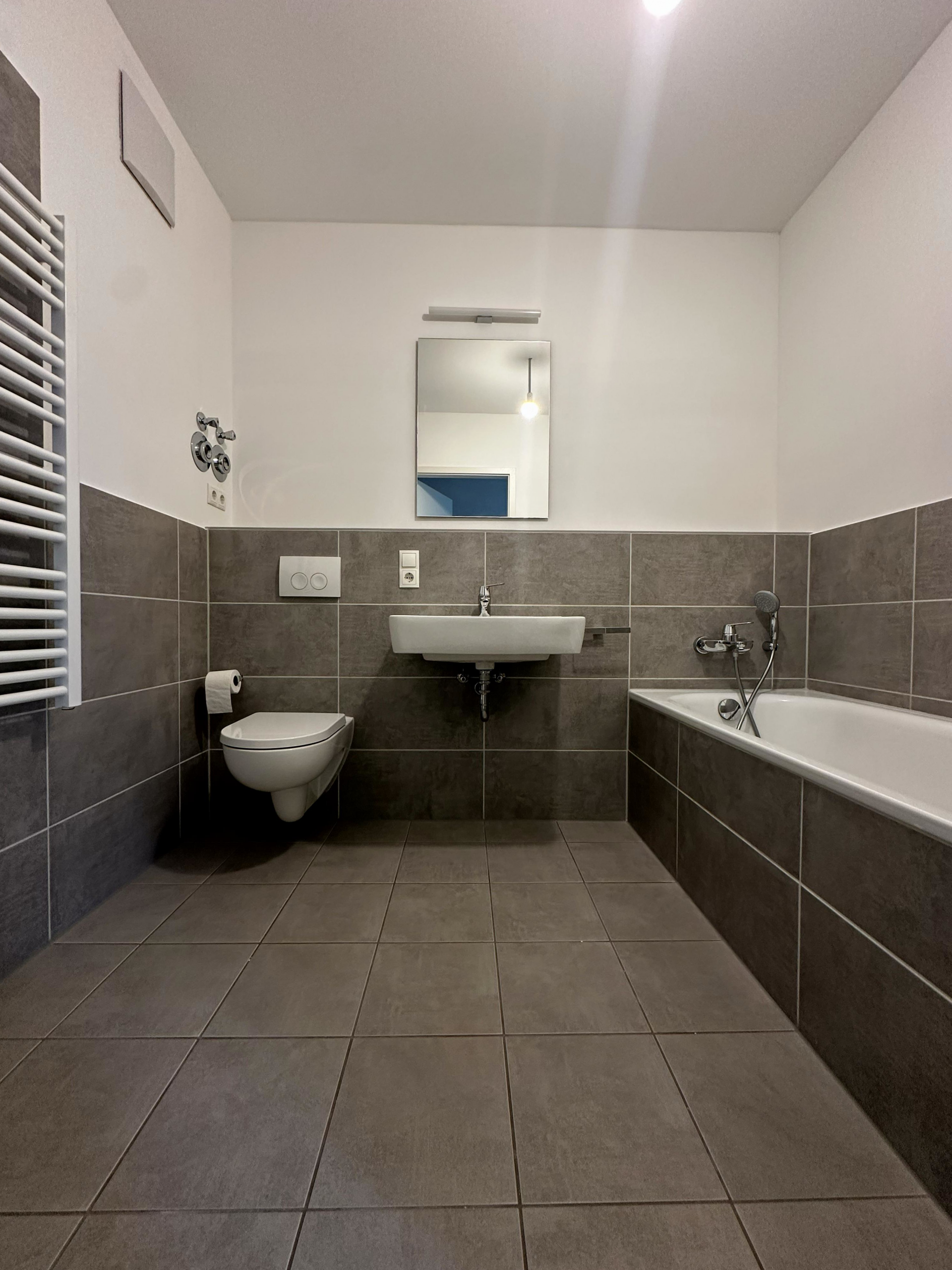 Schon vor dem Haus stehend beeindruckt das Gebäude im unteren Bereich mit der schönen Klinkerfassade. Beim Betreten des Treppenhauses imponiert der hochwertige Fußboden aus Feinsteinfliesen.
