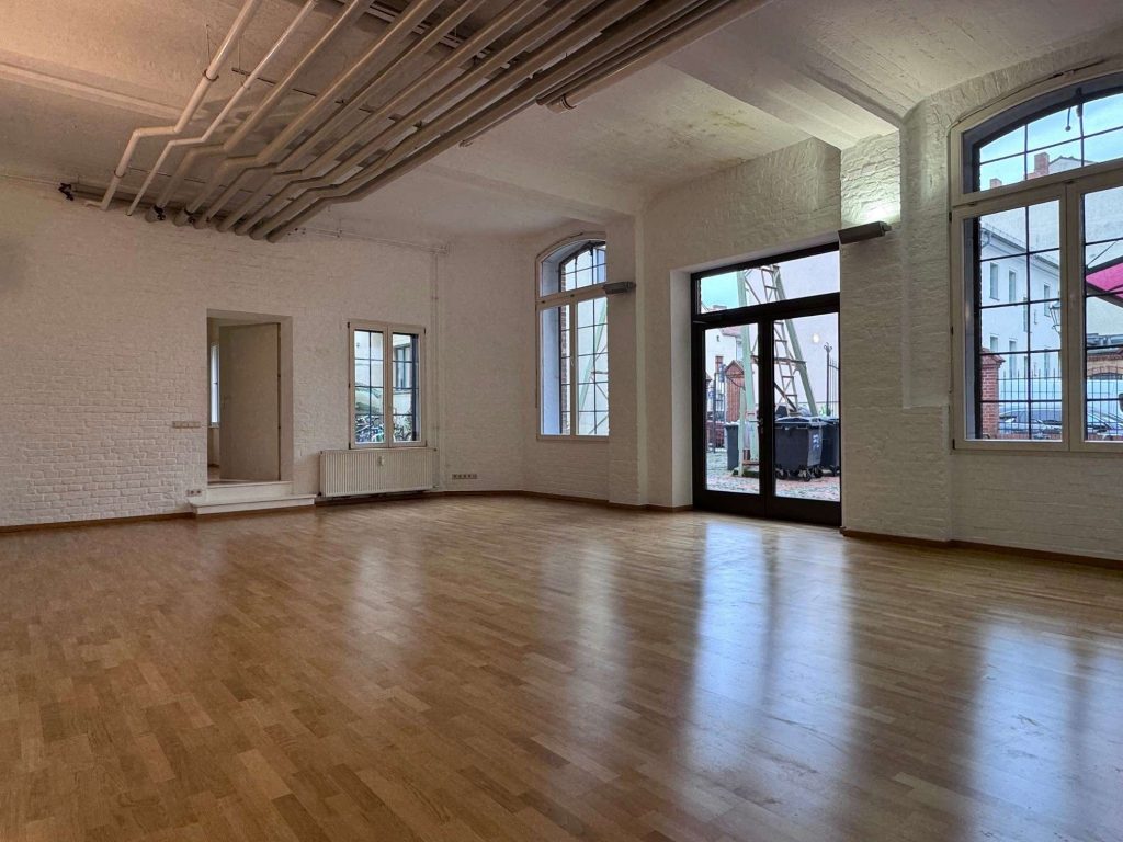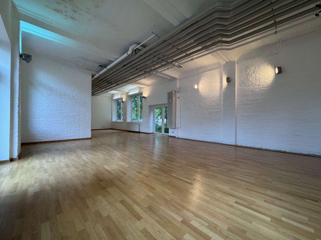 Die angebotene Fläche ist bis jetzt als Artistenschule genutzt worden. In der Zukunft können Sie diese Fläche zum Beispiel als Büro, Veranstaltungsraum, Sportstudio oder Tanzschule nutzen. Wir sind offen für Ihre Ideen!