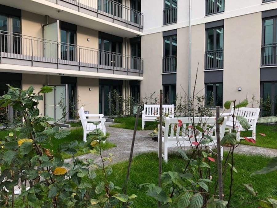 Der geschützte und begrünte Innenhof rundet das Gesamtbild der Wohnanlage ab. Es laden Sie Sitzbänke zum Verweilen ein.