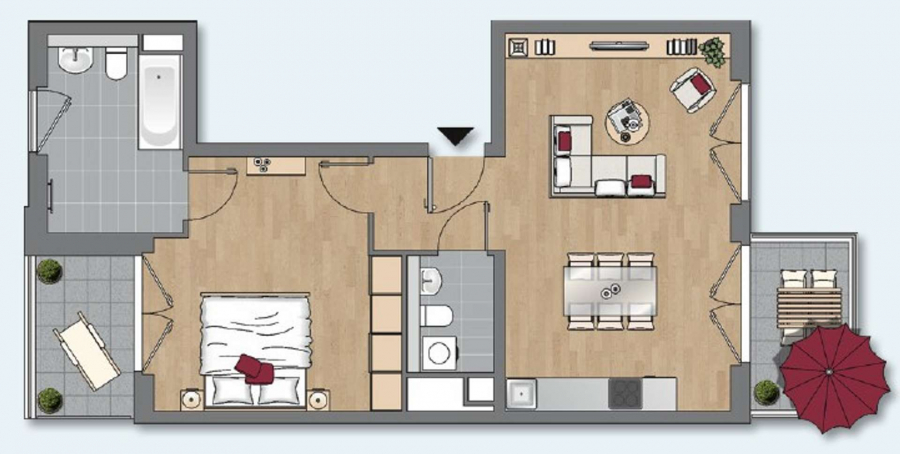 Schon vor dem Haus stehend beeindruckt das Gebäude mit einer schönen Klinkerfassade. Weitere Details des Neubaus ist die Tiefgarage, der Fahrradabstellraum sowie ein Aufzug, der Sie von der Tiefgarage bis ins Dachgeschoss bringt. Der geschützte und begrünte Innenhof mit einer ansprechenden Gartengestaltung rundest das Gesamtbild der Wohnanlage ab. Dort laden Sie Sitzplätze zum Verweilen ein und Kinder werden die Spielgeräte mögen. Die Wohnungen wurden hochwertig ausgestattet. Alle Wohnräume sind mit einem Eichenparkettboden versehen. Eine Fußbodenheizung in der gesamten Wohnung erwärmt nicht nur die Räume, auch im Winter werden Sie nie kalte Füße bekommen. Die Bäder wurden mit großen und modernen Fliesen ausgestattet. Durch teilweise fast raumhohe Fensterverglasungen sind helle und freundliche Räume entstanden. Die Küchenbereiche wurden ebenfalls teilweise in den offenen Wohn- und Essbereich integriert, abgerundet durch eine hochwertige Einbauküche. Die Balkone oder Terrassen bieten genügend Platz, um entspannt den Alltag bei einem Glas Wein ausklingen zu lassen.