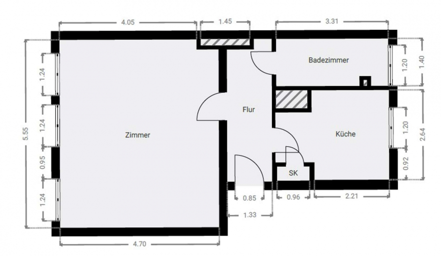 Sie erwartet eine renovierte Einzimmerwohnung mit folgender Ausstattung: